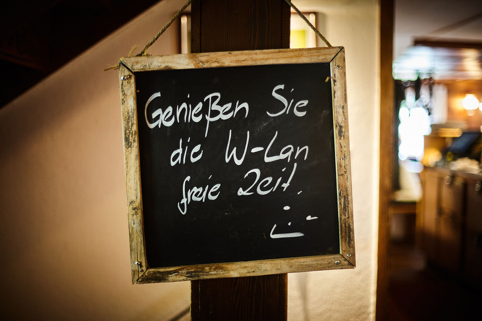 Dafür brauchen wir keinen Wellness-Bereich oder luxuriös ausgestattete Zimmer, bei uns ist alles urtümlich, urtypisch und urgemütlich. Wir lassen unsere Gäste in Ruhe genießen und erleben. Und damit Sie auch von allen anderen in Ruhe gelassen werden, verzichten wir bewusst auf Internet und Mobilfunk. Wir wünschen Ihnen viel Vergnügen beim Abschalten und Ausspannen – am besten auf unserer herrlichen Sonnenterrasse mit spektakulärem Panoramablick auf die Gottesackerwände.